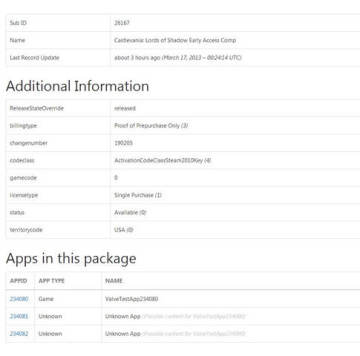 Konami的最新力作《恶魔城 黑暗领主2》除了登入PS3和XBOX360主机外,也将登入PC平台。由于其前代作品只在主机平台发售过,所以许多玩家期待Konami官方能把1代也一并移植到PC,而根据Steam的注册条目来看很有希望。根据最新的Steam游戏注册条目来看,其增加了一个《恶魔城 黑暗领主》的条目,据悉该作很有可能是《恶魔城 黑暗领主2》PC版的预定奖励。