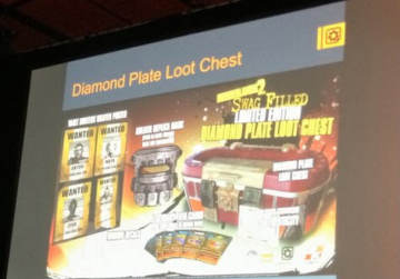 在最近举行的PAX East 2013电玩展上,Gearbox的《无主之地2》展台可谓十分火爆,会上公布了一款《无主之地2》限量宝箱备受系列玩家追捧,其中将会附赠游戏中角色Goliath的真实比例面具,此面具虚拟版下载码,可以换取在游戏内戴在你角色头上,还可自定义的Goliath面具,还有游戏设定艺术图,宝藏猎人的悬赏通缉令等,内容相当丰富。