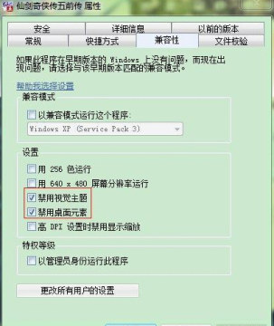 《仙剑奇侠传5前传》花屏解决方法 来源: 飞翔小编 2013/3/28 13:34:53 浏览量:694 花屏是让人很痛苦的事,很影响心情。不知道原因的还以为电脑出了什么问题。在《仙剑奇侠传5前传》中也遇到过这种情况,小编我是这么做的。解决办法:1.小编推荐大家用win7,xp内核不行容易导致花屏2.按Ctrl+Alt+Del,然后再按ESC回去就好了。3.退出游戏之后,玩家最好调整一下分辨率,也可以解决这个问题4.设置如下,禁用视觉主题和禁用桌面元素。