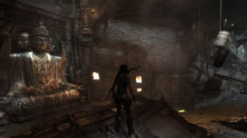 这里解密关键是收集到4个黄色的油桶,先要利用勾爪让轮胎把对面平台上的油桶撞下来。然后把地上三个油桶全部扔到最后一个油桶所在的高台,利用重量高台会被压塌然后你就有四个油桶了。