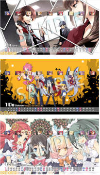 2013年度的桌面日历壁纸共有12张,从2013年3月起至2014年3月,包括《神明与命运革命的悖论》(神様と運命革命のパラドクス),《特殊報道部》,《魔界战记D2》(ディスガイア D2)三部游戏一年的丰富彩画,售价为一张100日元,如果购买了12个月的完整版日历壁纸,就可以得到每月壁纸自动换的便利功能