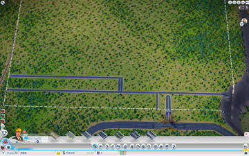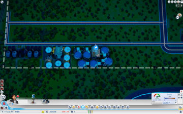 然后再放置一些城市的必须设施,最终如下图,由于每个城市的出入口位置不同,所以这个区域灵活摆放。随着城市人口的增长,最起码会需要2套污水处理厂、抽水泵浦系统,甚至是垃圾处理厂,所以这个区域就是拿来放置这些的。