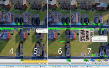 4)当前建筑物发展成高密度;5)删除下一个公园;6)多出来的空间放置住宅区;7)一个新的高密度建筑物拔地而起。