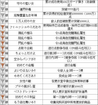 乳摇大作《闪乱神乐SV》奖杯攻略分享 来源: 飞翔小编feichenpan 2013/4/8 14:52:14 浏览量:1858 PSV平台的乳摇动作游戏《闪乱神乐SV》已经发售许久,相信不少掌机玩家都已入手,该作中包含奖杯要素,需要在游戏中满足一定条件才可以获得,这里主要给大家分享下《闪乱神乐SV》的奖杯攻略,希望对各位玩家能有所帮助。下面是PSV《闪乱神乐SV》的奖杯列表: