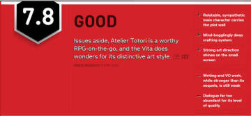 PSV移植版游戏《托托莉的工作室Plus》近日登陆欧美,外媒IGN当然要对此作详细评测一番,最后给予其7.8分的不错评价,称赞到该作是一款值得在掌机上游玩的RPG大作,PSV平台很好地展示了其独特风格。