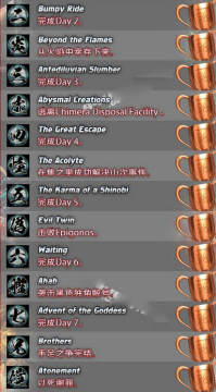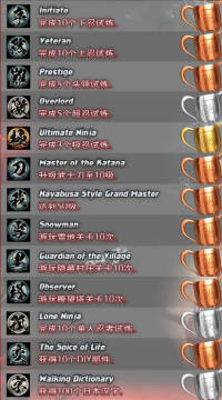《忍者龙剑传3》奖杯成就攻略 来源: 飞翔小编feichenpan 2013/4/11 14:58:28 浏览量:378 动作游戏《忍者龙剑传3》包含奖杯成就要素,玩家需要在游戏中满足一定条件才可以解锁奖杯或者成就,这里就给各位玩家分享下《忍者龙剑传3》的奖杯成就攻略,希望对大家能有所帮助。《忍者龙剑传3》奖杯列表,成就获取方法同样适用。