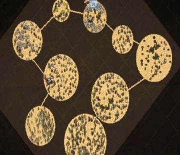 基本上,图一这种岛屿互相合并重叠的地图资源会比较少一点,但是交通方便。图二的独立岛屿型地图资源较多,各岛的资源非常单一。