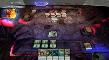 一开始Talrand打出Mind Control控制了我方的Cudgel Troll,之后进入我方回合,抓到一张平原,地可以下也可以不下,无所谓,之后把Lightning Greavers装备到Leatherback Baloth身上,然后把Ring of Kalonia装备到Garruk's Packlear身上,不要忘了把Lighting Greavers装回来,用来防对面的神器Pit Trap,到自己的进攻阶段,用Garruk's Packleader进攻,待电脑阻挡并重生Cudgel Troll之后打出Divine Verdict,目标Cudgel Troll,电脑虽然阻挡成功,但由于有trample异能,还是被带走了。