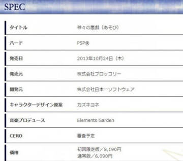 著名的BROCCOLI公司(株式会社ブロッコリー),他们又于今年公布了其最新大作《众神的恶作剧》(神々の悪戯)的最新消息,该部作品将于2013年10月24日登陆PSP平台。