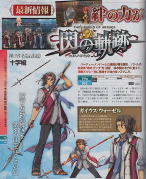 风流大叔耍十字枪《英雄传说 闪之轨迹》新角色曝光 来源: 飞翔小编feichenpan 2013/4/25 10:15:55 浏览量:419 最新一期的电击游戏杂志曝光了Falcom人气RPG轨迹系列新作《英雄传说 闪之轨迹》的相关情报,三名新角色被曝光,他们分别是铁道宪兵大尉的蓝发少女,风流倜傥的十字枪大叔以及帝国贵族少年,究竟他们将在游戏中有何戏份?现今还不得而知,我们只好等待官方进一步的消息公布,敬请期待。游戏杂志情报图: 游戏预告片回顾:《英雄传说 闪之轨迹》预定于2013年内发售,登陆PS3和PSV双平台,游戏将会活用PS3和PSV的机能,全面提升绘图、演出、战斗系统等的表现,喜欢轨迹系列的玩家千万不要错过了。