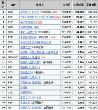 上周日本游戏销量排行榜(4月15日至4月21日):