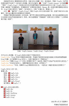 在 LongDD和 妖刀离队之后, TongFu战队一直在寻找合适的队员。期间 Banana和 yAobAi相继加盟,但由于成绩不佳,他们又招入了年初加盟 For.Love的原 EHOME主力 KingJ,替换了短暂试训的yAobAi。在DOTA2首测和完美DOTA2联赛DSL来临之际,TongFu确定了最终的名单,今天TongFu官方微博公布,Banana和KingJ正式加盟,同时原 VG战队的 Etena7也将加盟并暂任教练一职: