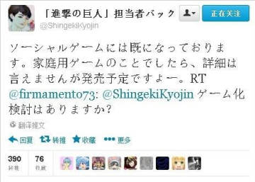 《进击的巨人》将改编成游戏 登陆家用主机平台 来源: 飞翔小编feichenpan 2013/5/10 11:41:25 浏览量:2082 现如今最火的动漫新番当属《进击的巨人》,该动画将原作者谏山创的漫画精髓完美表现出来,超强震撼力的巨人形象已深入人心,根据《进击的巨人》负责人推特信息爆料,该作有意改编成游戏登陆家用主机平台,这让不少玩家都激动不已。推特信息原文:《进击的巨人》负责人推特信息显示目前该作已经推出过社交游戏,至于主机游戏方面,虽然目前无法告知详情,但已经有意要发售制作了。