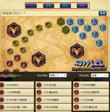 第三步,在符文标签下根据已选择的英雄模拟符文,点击对应的符文类型选择具体的符文。
