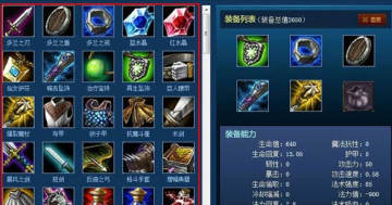 第四步,在装备标签下根据左边展示的装备来选择你需要的装备,并且可以在右下方查看装备总体属性。