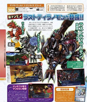 NBGI新作《数码宝贝世界 复原解码》预定于2013年6月27日发售,登陆3DS掌机平台,根据最新游戏杂志图显示,由巨龙兽进化的机械巨龙兽将成为究极体,也就是新登场的终极巨龙兽,其机械武装看起来与变形金刚里的霸王龙有的一拼,肯定是游戏里的强力角色。