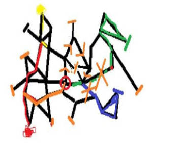 一分钟都不能差,赶快攻下方(橙线),别占领刚刚回空成计时去过的灰地,亦不要理黄方了