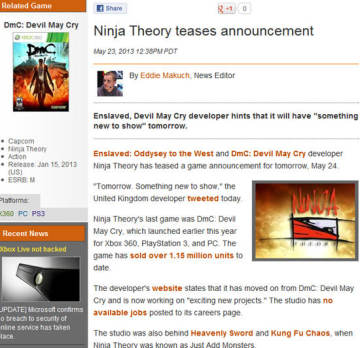 Ninja Theory工作室开发的《鬼泣5》虽说风格迥异,与整个系列格格不入,但该作还是取得了全球115万套的销量,现今微软和索尼的次世代主机都以公开,Ninja Theory官方自然会让其新作品登陆PS4和XBOX ONE平台,这个新作很有可能就是《鬼泣6》。