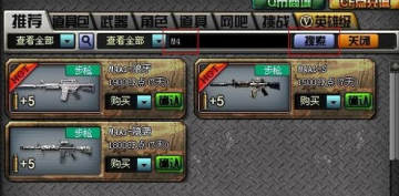 玩家点击后,弹出输入框,玩家可在输入框内输入任意文字,点击“搜索”按钮,立即显示在当前所选商城分页下的包含所搜索字符的武器。