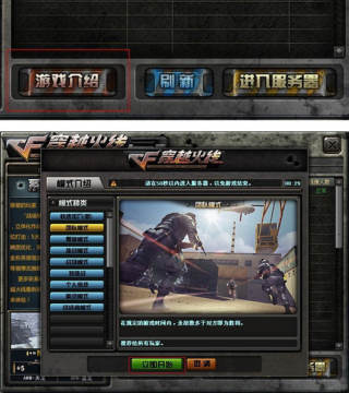 在选择服务器页面,增加了“游戏介绍”按钮,玩家点击该按钮后,进入模式介绍页面,在模式介绍页面中,选择一个模式,点击“立即开始”按钮,可直接使用快速加入功能进入游戏房间。