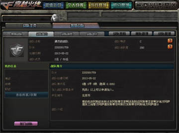 玩家点击某一支战队的名称后,可查看该战队的详细信息,同时可点击“加入战队”按钮申请加入该战队。