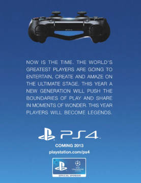 索尼在先前PS4发布会上市只宣布新主机将于2013年内假期上市,并声明此时间不适用于全球范围。也就是说首发上市地区会在美国、日本、欧洲三个重要地区选择。根据外媒IGN的最新报道,索尼PS4广告近日在英国的地铁中出现,所以PS4肯定会在2013年之内在英国包括欧洲地区上市,很有可能在今年12月的圣诞假期发售。
