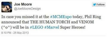 《乐高漫画超级英雄(LEGO Marvel Super Heroes)》是一款由TT Games工作室负责开发的新作,预定于2013年秋季登陆PS3、XBOX 360、WiiU、NDS、3DS、PSV和PC平台。而近日官方终于又公开了两名新参战的超级英雄,它们分别是毒液(Venom )以及霹雳火(Human Torch)。