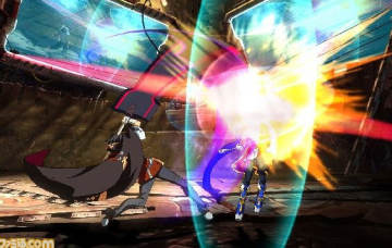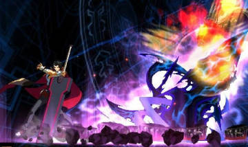 现今最强2D格斗游戏《苍翼默示录 刻之幻影》将于2013年10月24日登陆PS3主机平台,官方现今放出了该作最新游戏截图,主要展示了新参战角色睦月神乐的招式与必杀技,其超必杀“龙霸·狱焰尘”效果相当霸气华丽,绝对是新作中的强力角色。