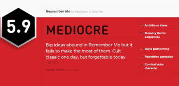 Capcom最新动作游戏《勿忘我》(Remember Me)将于6月4日正式登陆PC,PS3和XBOX360平台,著名评测媒体IGN第一时间对该作进行详细评测,只给予其5.9分的中等评价,按理来说这款新作的品质不会这么平庸,究竟有什么缺点拖了游戏的后退呢?下面就来看看吧。