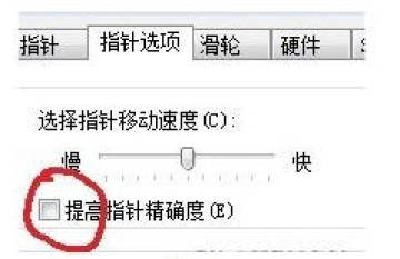4.然后返回上一界面,下拉到最底部,点击"鼠标设置",跳出新窗口后点击上方的"指针选项"菜单,如下图把"提高指针精确度"前的勾取消掉,完成后,整个WIN7系统的鼠标加速功能将彻底关闭。