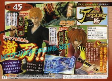 《JUMP全明星大乱斗》黑崎一护和绯村剑心参战 来源: 飞翔小编feichenpan 2013/6/6 15:29:04 浏览量:678 动漫杂志《少年JUMP》诞生45周年纪念作品《JUMP全明星大乱斗》(J-Stars Victory VS)近日公布了新参战角色,他们分别是来自《死神BLEACH》的黑崎一护,以及来自《浪客剑心》的绯村剑心,加上之前公布的孙悟空,蒙奇·D·路飞,阿虏和漩涡鸣人,《少年JUMP》旗下热血动漫的主角齐聚一堂,将会为大家上演怎样激烈的战斗呢?我们拭目以待。黑崎一护:绯村剑心:《J-Stars Victory VS》预定于2013年发售,登陆PS3和PSV双平台。