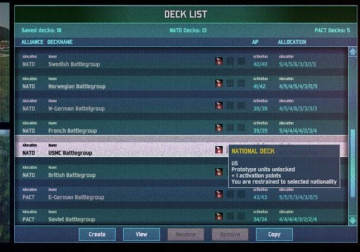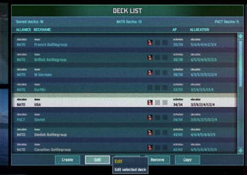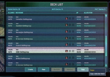 战争游戏:空地一体战 使用其他国家武器单位的方法 来源: 飞翔小编 2013/6/6 17:28:40 浏览量:1306 《战争游戏:空地一体战》这款战争游戏受到不少玩家的好评,在游戏当中玩家可以使用各种武器装备来参加战斗。一个国家的武器总觉得不够用,下面是使用其他国家武器单位的方法讲解,希望对大家有所帮助。首先呢,空地一体战默认已经解锁全部武器装备,不用什么升级去解锁。游戏在Deck(牌组)中提供已经设置好的国家牌组,它们不可删除或者修改,如下图: 但是,你可以copy(复制)一份,然后就可以随意修改了: 然后此国家的特有兵种就出现了: 阿帕奇 F117 苏联的: