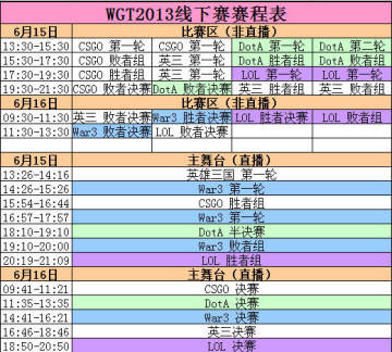 WGT2013线下决赛将于6月15—16日在北京奥林匹克中心综合训练1馆开战。比赛囊括了War3、Dota、CS:GO、英雄三国和LOL共五个项目。在魔兽争霸3项目上,四位受到邀请的天王级选手月魔moon、塔魔infi、美兽王Lyn和鬼王TeD将展开轮番厮杀,为我们呈现一场魔兽争霸的饕餮盛宴。