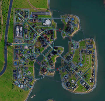 在某一天突然发现观光客远没以前多,办活动也吸引不了人,发现火车站客流量很低但等待时间很长,于是跟随了一辆火车,发现它只在我的城里绕圈从不上下客,原因大概在于我给支线机场预留第三跑道修改的进城轨道接驳方式...改回来后城市的运作马上变得正常了,明明不需要特意设置往返线就可以超时空掉头的火车到了环城铁路就变弱智了,所以还真搞不懂MAIXS到底在这些细节处下了多少工夫,总之真是辛苦之前在火车上度过日日夜夜的游客们...