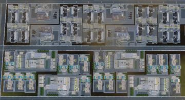 没有造大警局,医院和消防。采用四块分别四个小警局,诊所,小消防。进行针对片的处理。