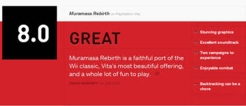 PSV复刻移植游戏《胧村正》获8.0分IGN好评 来源: 飞翔小编feichenpan 2013/6/26 11:14:34 浏览量:1518 PSV复刻移植游戏《胧村正》近期在欧美地区发售,国外著名评测媒体IGN也是第一时间对其进行了详细评测,给予其8.0分的好评,下面就来看看老美玩家是如何评论这款日式和服动作游戏的吧。评分:8.0 Great优点:出色的画面,经典的ost背景音乐,双主角路线以及战斗爽快度很高。缺点:回溯是件苦差事。总评: 《胧村正》是一款wii的经典动作游戏,PSV的复刻移植的非常出色,并且可玩性很高,推荐给玩家入手。