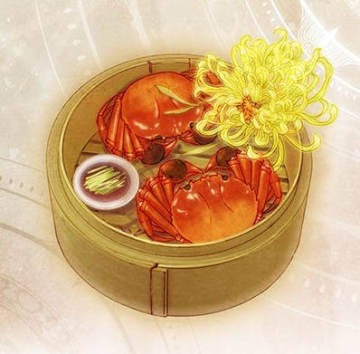 松壑蒸蟹:色香味俱佳的美味蒸蟹,既有蟹的清鲜,又有菊花淡香,有一定滋补效用。