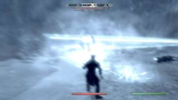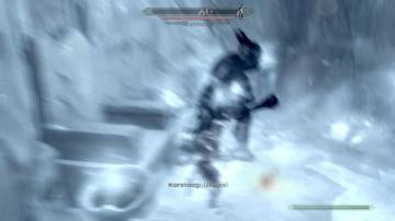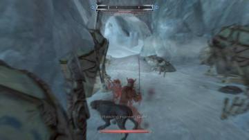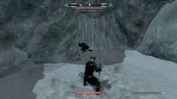 本来以为又是个秋风扫落叶的三下五除二战斗,此时,是传奇级难度,我60级,装备是头部多次打磨后的双重附魔的雪精灵头盔,和艾色瑞姆王冠(君王石+元素石),多次打磨的乌木链甲,多次打磨的双重附魔的护手和靴子,武器是乌木刃和多次打磨的龙祸和哈孔之刃,技能是重甲、单手、召唤等全满,没有任何控制台,手动升级。结果没成想…………我先来一个诺德战嚎,来吓跑敌人,结果意外的无效,反被一个龙吼吹得很远,查控制台才知道,90级,自带冰霜斗篷,而且各种抗,抗冰,抗战嚎,抗多数龙吼、抗击晕…………