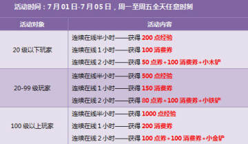拥有【回归用户】或【超级回归用户】道具的玩家,每天登录游戏后,均可获得一张2小时双倍经验卡。