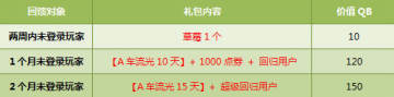 拥有【超级回归用户】道具的玩家,每天完成5局竞速赛,即可获得100点券+200消费券。