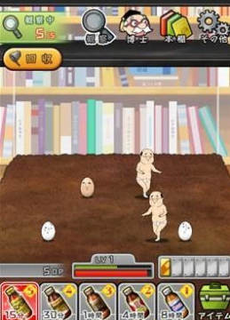 与同类游戏一样,玩家在游戏中的基本任务主要就是播种和收获。在画面下方选择一支营养剂即可开始播种,随后器皿中会出现蛋形物体,待时间成熟后,爸爸就会破壳而出,最后完成回收。不同的营养剂的效力不同,效力越强的等待时间越久,但是可收获次数越多。