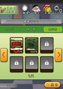 流程中博士会不断交给你研究课题(任务),如收集XX个XX型爸爸、使用XX个道具,完成后可以获取DP点数,DP点数可在商店中购买辅助道具和研究设施。其中研究设施包括箱子、土壤和植被,通过不断升级才能组合出相应的生态环境以获取某些稀有的爸爸。