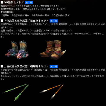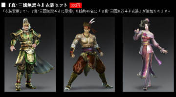 《真三国无双7》7月DLC更新 4代经典服装配信 来源: 飞翔小编feichenpan 2013/7/5 17:39:33 浏览量:826 《真三国无双7》将在7月更新DLC追加内容,其中免费DLC包含经典BGM,飞蹴甲的上位武器和异色武器,娥眉刺的上位武器和异色武器等,收费DLC中最为吸引玩家的当属《真三国无双4》的经典服装,其售价为300日元,玩家在购买之后可以选用46位武将的4代经典服装,值得回味。《真三国无双7》7月免费DLC《真三国无双4》经典服装