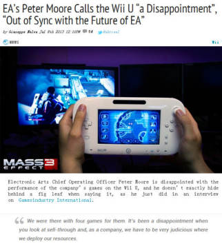 EA彼得摩尔对WiiU游戏销量失望 认为WiiU脱离时代
