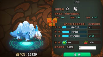 如图,进入副本后即可获得培养丹,然后进入培养入口即打卡龙的信息面板,培养,下一步进入该龙的培养界面,消耗培养丹和食物对龙的攻防血进行提升,培养等级共分10阶,每提升到新的一阶均可获得额外的属性加成。