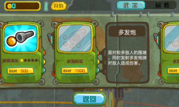 而在屏幕正下方按键,玩家点击可选择已经购买的武器。界面左上方显示玩家的生命数量。游戏中消灭关卡内所有的敌人即可完成闯关!
