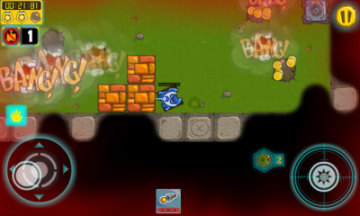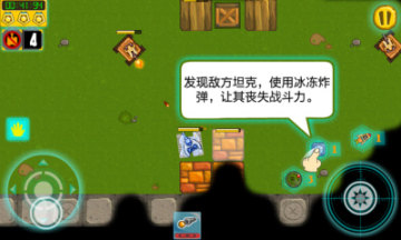 点击左下方的方向按键,玩家按住不放并圆形移动,可控制坦克四处移动。而屏幕右下方按键,玩家按住不放并圆形移动,可控制坦克炮管转动方向,同时发射炮弹。