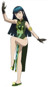 她是一个位于被称为“老歌”的街道上的中华料理店的店主,使用暗黑舞斗的行家。性格好强但很关爱家人。职业为舞斗家。驱使电光石火的足技将敌人踹飞。