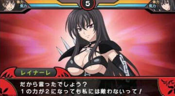 香艳擦边球要素满载的《恶魔高校D×D》将改编成游戏,登陆3DS掌机平台,预定于2013年11月28日发售上市,现今官方公布了该作游戏相关情报,玩家在剧情部分可以能够跟女角色们展开会话和事件,根据选择不同,女角色们的好感度会发生变化。在各章节有着与各种对手的战斗,战斗以指令选择回合制进行,击破对手即胜利。释放在日常部分积攒的“欲情力量”,通过满足特定的条件,可以发动令对手受到屈辱打击的“洋服崩坏”。