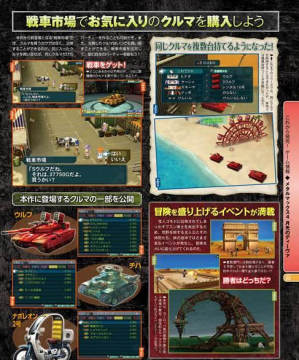 在本作中新登场的“战车市场”中不仅可以购买战车,还能够交换,玩家可以做成由同一款战车组成的队伍,活用战车市场可以对应任何战斗状况。